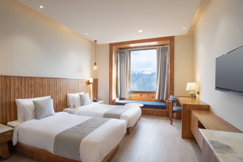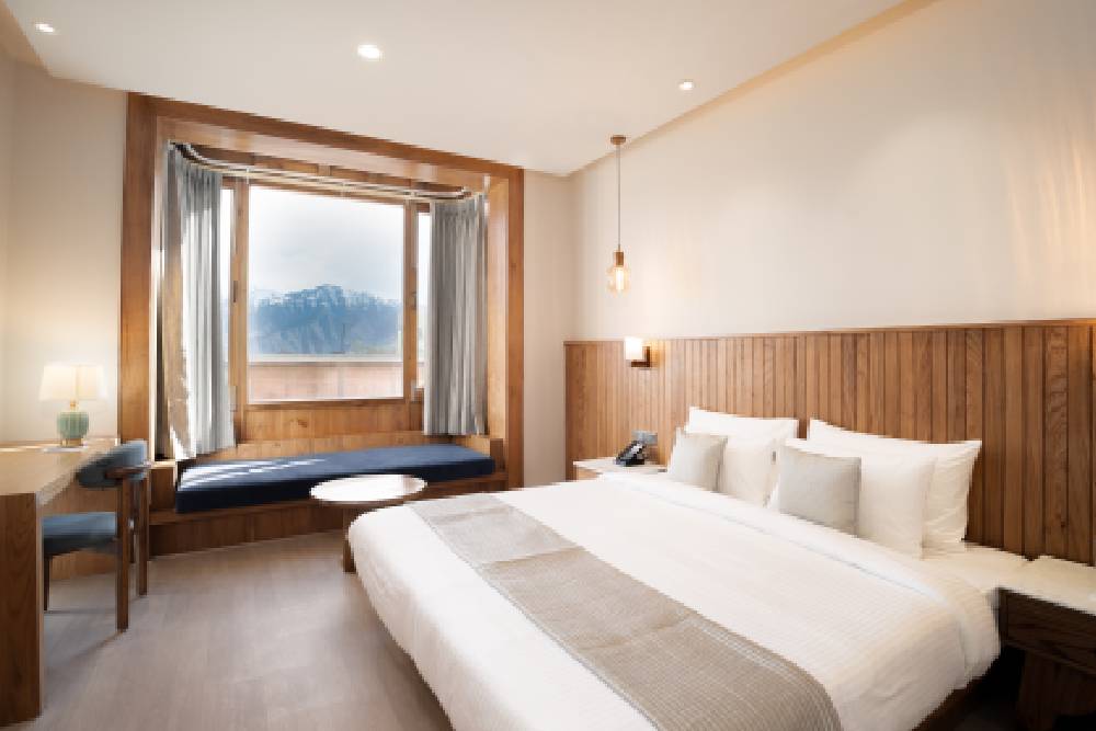 Elevate your stay with the Deluxe Room with a bay window, offering a unique perspective of Ladakh's breathtaking vistas. Enjoy the comfort of a spacious room, complemented by the warmth of natural light streaming through the bay window. Indulge in modern amenities, including hot water, a hair dryer, electric kettle, TV, and Wi-Fi, creating a delightful fusion of luxury and nature.