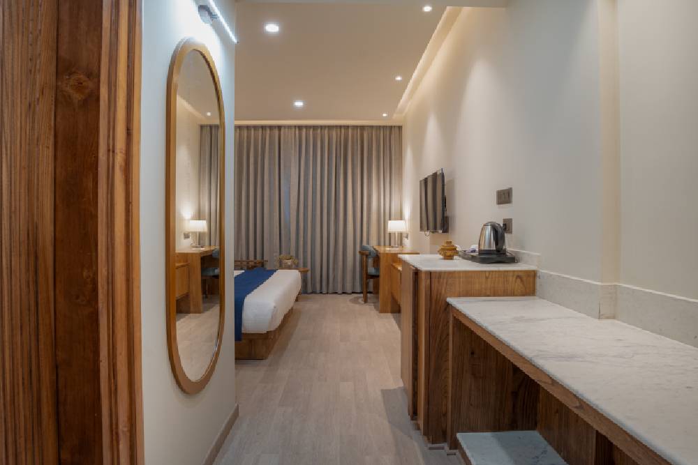 Embrace simplicity and comfort in our Standard Rooms at The Highland Ladakh. These cozy accommodations are perfect for those seeking a retreat with essential amenities. Relax in a well-appointed space designed for tranquility, featuring hot water facilities, a TV, telephone, and complimentary Wi-Fi. Experience Ladakh's beauty without compromising on comfort.